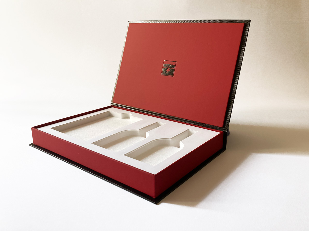 In occasione della celebrazione dei suoi 65 anni di attività, abbiamo realizzato per CTM, azienda operante nel settore della meccanica pesante, un cofanetto in cartoncino rivestito con materiale che simula il carbonio, contenente all’interno due tag per bagagli in pelle personalizzati e un porta passaporto. Un kit da viaggio di grande impatto. Sempre per lo stesso evento abbiamo realizzato un portachiavi in pelle personalizzato.